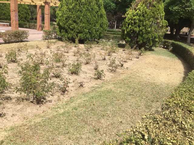 Un año después, como los responsables de LIBRES han podido comprobar, el parque se cae a pedazos. “Los bancos de piedra están resquebrajados, los de madera con astillas y los aparatos de la zona infantil -ya de por sí escasa- tienen óxido por sus materiales. E incluso el riego por goteo no ha funcionado hasta hace dos días, por lo que toda la zona verde, con amplios jardines y rosales, está seca”, ha lamentado Cristina García.