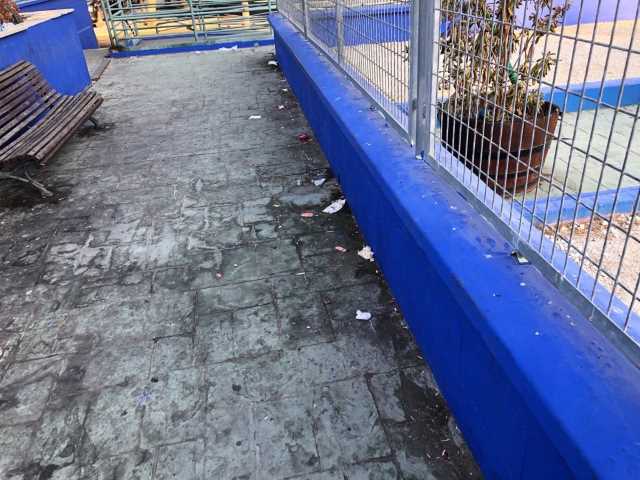 “Ya denunciamos en agosto desde LIBRES esta situación, pero no ha habido ningún cambio, más bien al contrario. Hoy hemos vuelto al parque infantil de esta barriada, y hemos visto cómo está el piso, cuya suciedad viene acumulándose durante meses. Se evidencia que el recinto no suele ser baldeado, ya que el suelo está pegajoso y tremendamente sucio, especialmente en el entorno del alcantarillado, en las esquinas y en los bancos”, ha detallado Iván González.