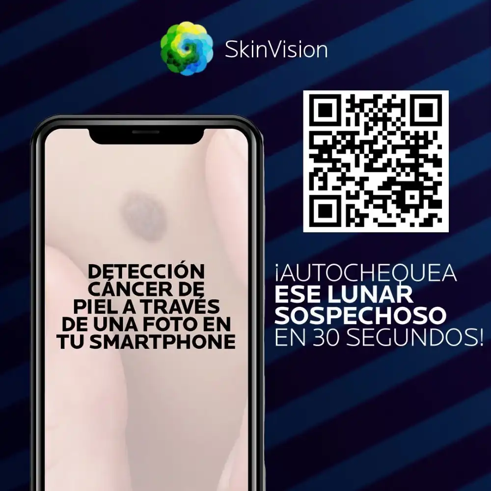 Para participar en esta campaña de detección, puede descargar la aplicación ‘SkinVision’ a través de este ENLACE o escanear el siguiente Código QR y, si tiene alguna consulta o pregunta, puede dirigirse al Proyecto Soludable a través de sus canales en redes sociales.
