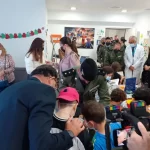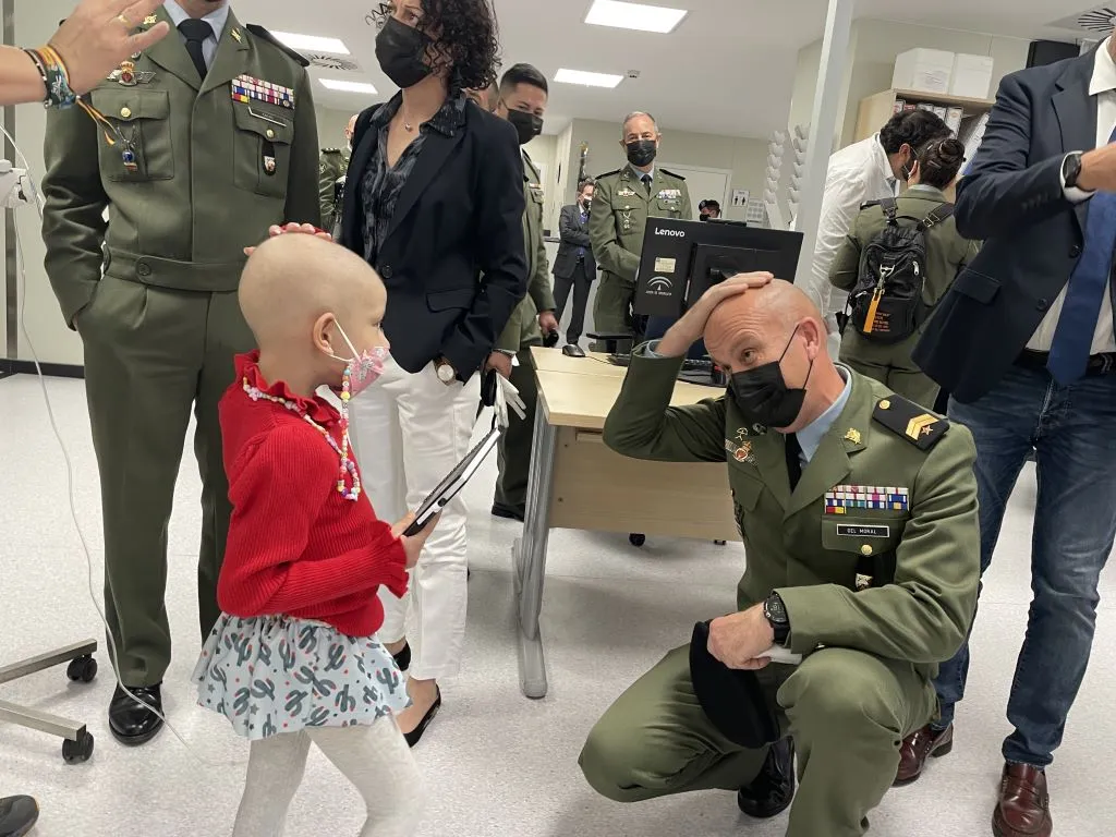 Como todos los años, la Brigada Paracaidista, que llega a Málaga para participar en los desfiles de Semana Santa con las Reales Cofradías Fusionadas, ha compartido unas horas con los menores ingresados y sus familiares, que se han interesado por el paracaidismo, y han hecho entrega de regalos y recuerdos de la visita a los niños para hacer más llevadera su estancia en el centro sanitario.