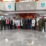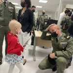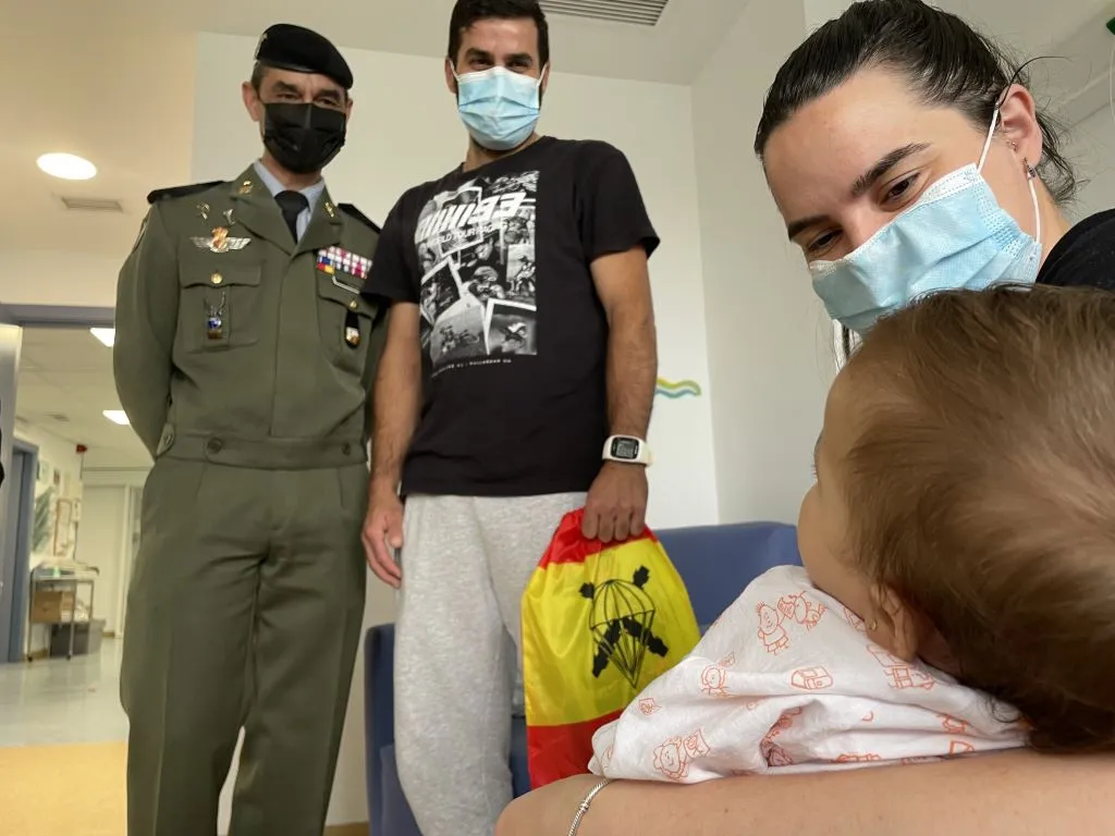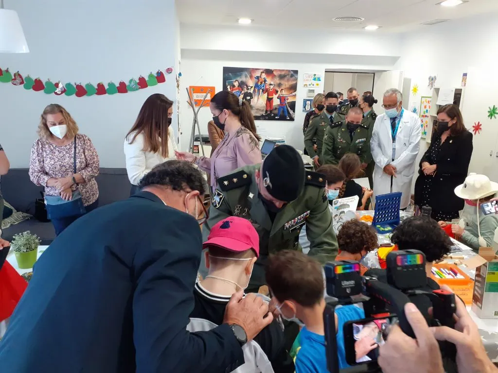 El delegado de Salud y Familias en Málaga, Carlos Bautista, acompañado por el gerente del Hospital Regional de Málaga, José Antonio Ortega, por miembros del equipo directivo y profesionales de Pediatría, han recibido esta mañana a una representación de la Brigada Paracaidista Almogávares VI del Ejército de Tierra, al mando del General Jefe de la Brigada Luis Jesús Fernández Herrero, en una visita que, desde hace ya más de 18 años, realiza a los niños y niñas ingresados en el Hospital Materno Infantil de Málaga.