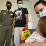El Hermano Mayor de las Reales Cofradías Fusionadas, José Manuel Álvarez, junto con otros representantes de esta Cofradía, ha acompañado a esta representación de los militares paracaidistas, en su recorrido por las unidades de hospitalización de Pediatría del Materno Infantil.