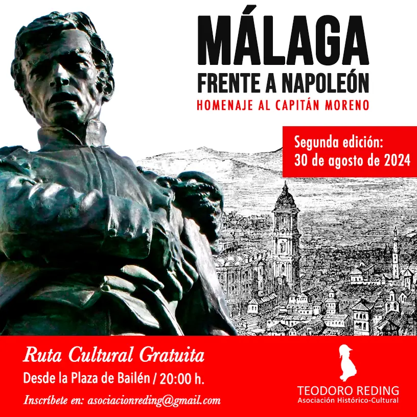 A pesar del terral, más de treinta personas acompañaron a la Asociación Histórico – Cultural «Teodoro Reding» el pasado viernes a través de un recorrido con el que este colectivo de voluntarios recuerda el papel de Málaga durante la Guerra de la Independencia (1808-1814) y, en un nuevo aniversario de su martirio, como homenaje al capitán Vicente Moreno Baptista, oficial del Regimiento de Málaga y líder guerrillero en 1810.