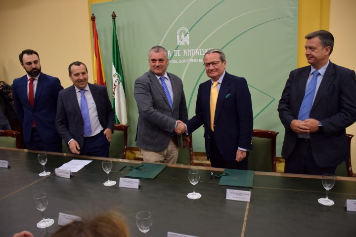 El consejero de Empleo, Empresa y Comercio, Javier Carnero, y el decano del Cuerpo Consular de Málaga y Cónsul Honorario de Suecia en la provincia, Pedro Megías, han firmado hoy en Málaga un protocolo de colaboración para incrementar las inversiones extranjeras en la provincia, una materia en la que este territorio parte con ventaja ya que, según el balance de 2017 de las inversiones exteriores captadas por la Agencia de Innovación y Desarrollo de Andalucía IDEA, el 42% de los proyectos eligieron Málaga como destino.