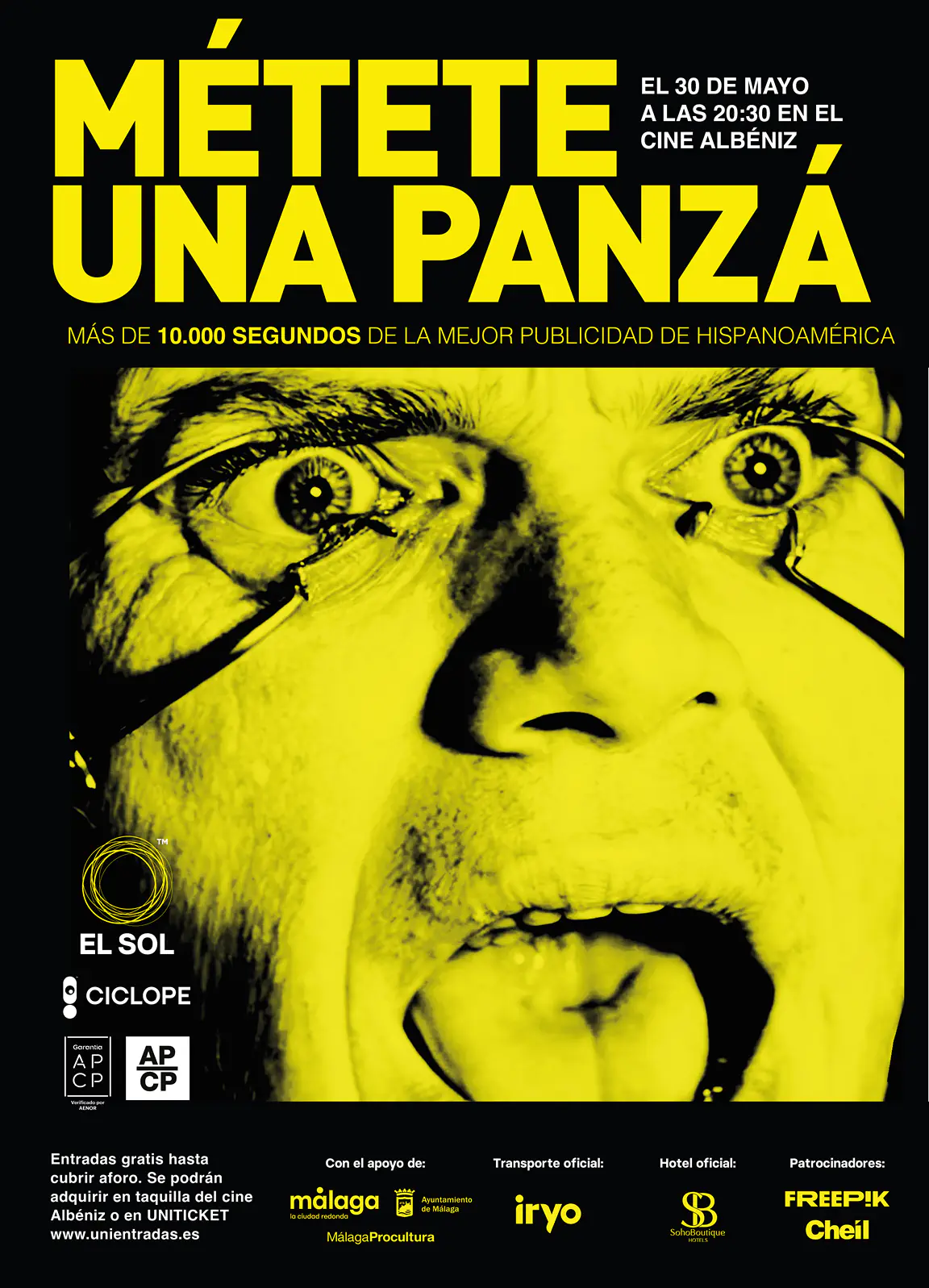 El Sol, el Festival iberoamericano de la Comunicación Publicitaria, en colaboración con la APCP (Asociación de Productoras del Cine Publicitario) y el Festival Cíclope, ha preparado una selección especial de bobinas para celebrar la 38 edición del festival, para que los malagueños disfruten de una Panzá de buena publicidad.