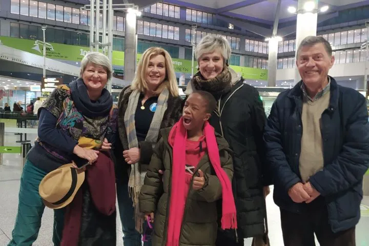 Eloisa Cano, delegada de Tierra de hombres en Málaga junto con Yolanda y Paco, la familia de acogida de Mamadou durante su estancia en España, se han despedido del menor en el aeropuerto que regresa de la mano de Elisa Mingo, veterana voluntaria de Aviación Sin Fronteras que lo acompañará hasta el feliz encuentro con sus seres queridos.