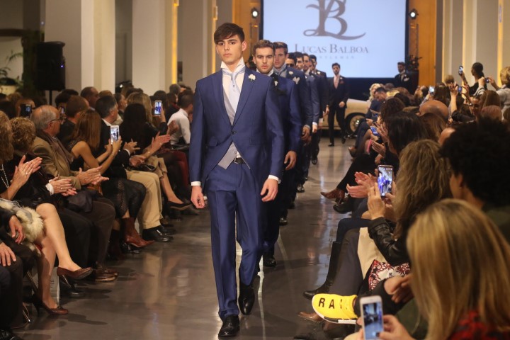 Los candidatos han desfilado con la colección de ceremonia del diseñador tinerfeño, Lucas Balboa, una colección serena, tranquila, relajada, clásica, con toque de fantasía y espectáculo, con complementos de pajaritas grandes, plumas, cuellos cervantinos. Un diseñador que asombra a los expertos por su gusto, su estética, su modernidad, sus trazos nuevos.