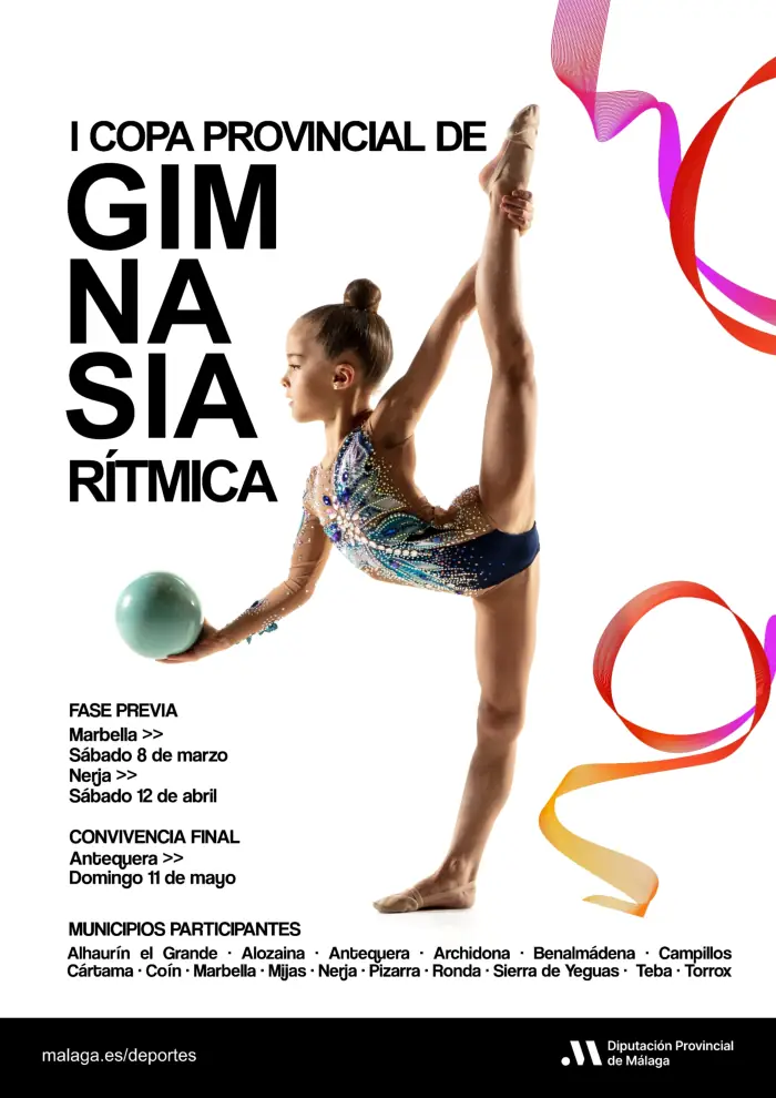 La Diputación de Málaga organiza la primera Copa Provincial de Gimnasia Rítmica, que se celebrará de marzo a mayo en Marbella, Nerja y Antequera con la participación de gimnastas de estos tres municipios y de otros 13: Alhaurín el Grande, Alozaina, Archidona, Benalmádena, Campillos, Cártama, Coín, Mijas, Pizarra, Ronda, Sierra de Yeguas, Teba y Torrox.
