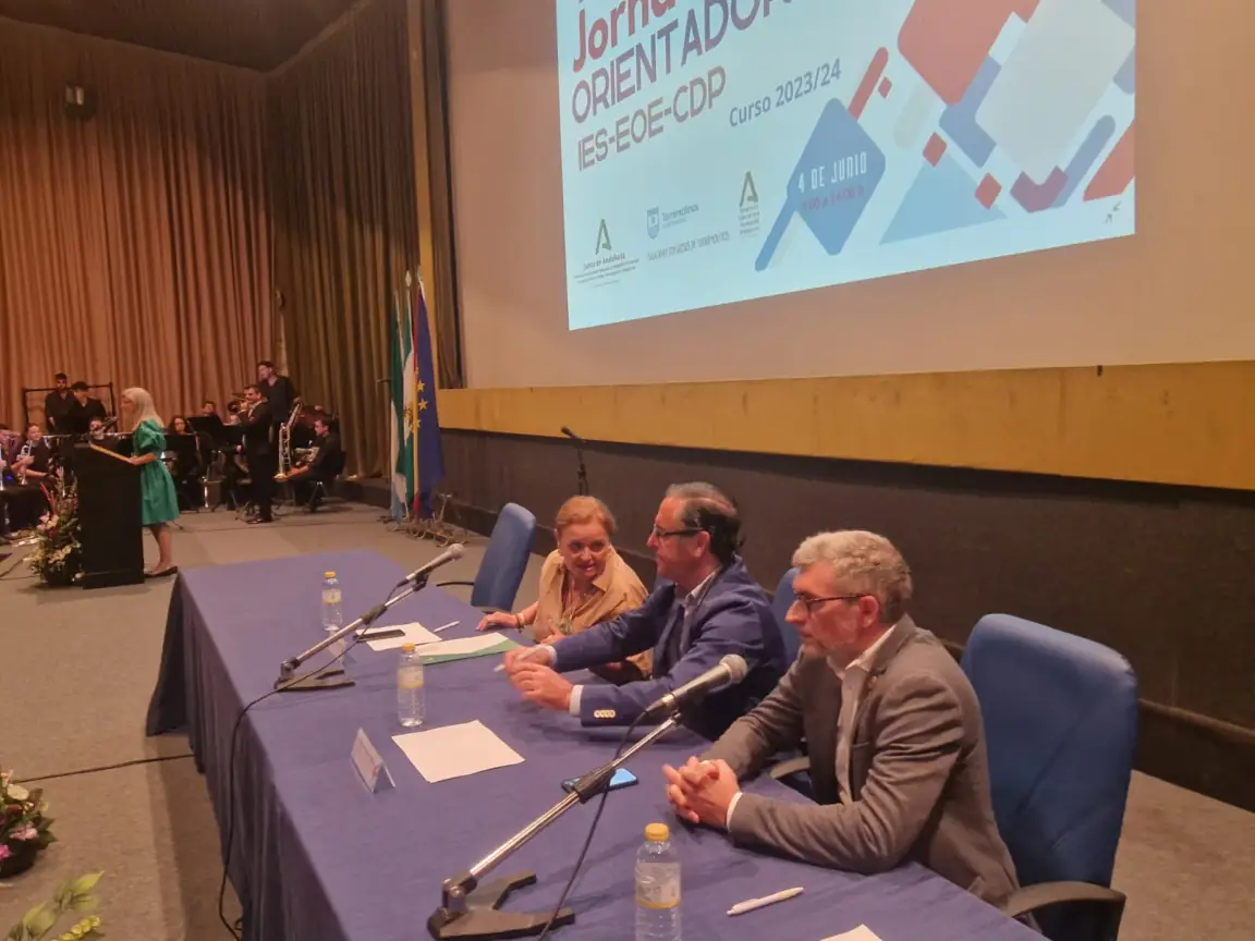 Más de 500 profesionales de toda la provincia de Málaga participan hoy en las III Jornadas de Orientadores IES-EOE-CDP que se desarrollan en el Palacio de Congresos de Torremolinos, organizadas por la Delegación Territorial de Desarrollo Educativo y Formación Profesional de Málaga, a través de su Servicio de Ordenación Educativa. Al acto inaugural de esta sesión de trabajo han acudido el delegado territorial, Miguel Briones; el concejal de Educación, Igualdad, Empleo y Juventud de Torremolinos, Francisco García, y la jefa del Servicio de Ordenación Educativa, Aurora Díaz.