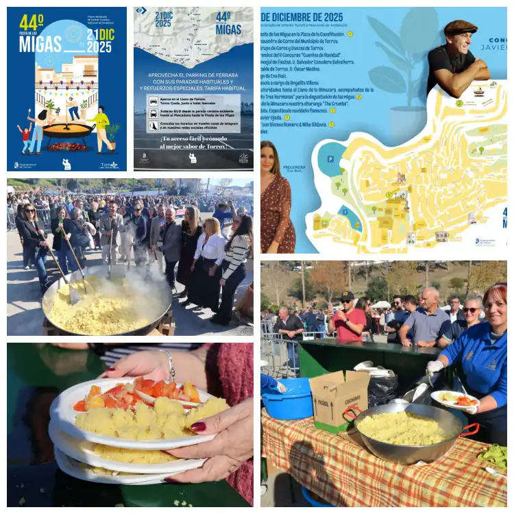 El Ayuntamiento de Torrox tiene preparadas más de seis toneladas y media de ingredientes y cerca de 200 arrobas de vino para celebrar este próximo domingo 21 de diciembre la Fiesta de las Migas en su edición número 44. Así lo ha destacado el alcalde de la localidad, Óscar Medina, quien ha recordado que esta cita gastronómica, festiva, turística y cultural “se ha convertido en una de las principales de Andalucía y España”. Medina ha subrayado que “no en vano esperamos igualar o incluso superar la asistencia de 50.000 personas contabilizadas por la Policía Local el pasado año”. El alcalde ha añadido que «no hay que temer las predicciones meteorológicas: las migas están incluso más buenas cuando el tiempo no acompaña tanto como otras veces». La Fiesta de las Migas de Torrox, que será pregonada en esta edición por la presentadora de televisión Eva Ruiz y que contará con la actuación estelar del cantante Javier Ojeda, entre otras, está declarada de Interés Turístico Nacional de Andalucía y Provincial de Málaga.