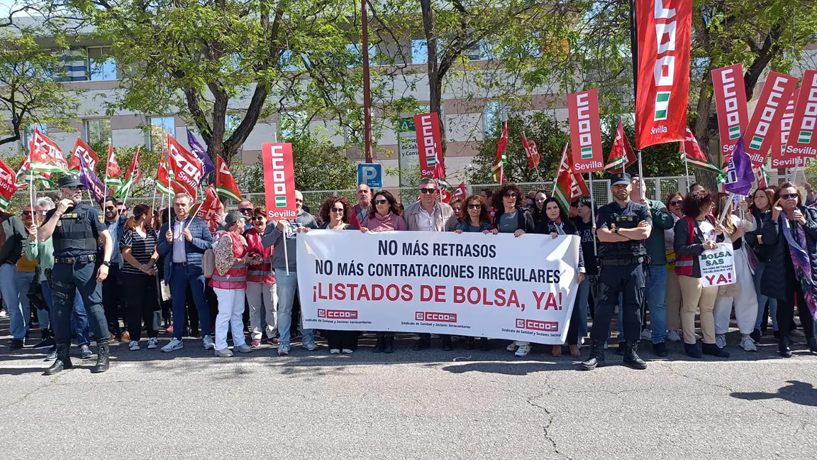 Trabajadores del SAS, junto a representantes sindicales de CCOO, han secundado de forma masiva la movilización convocada por esta organización sindical ante el “reiterado incumplimiento” de la consejera de Salud sobre la publicación de los listados de la bolsa del SAS. Asimismo, el más de un millar de personas que ha respaldado la citada movilización ha exigido a la Administración sanitaria que garantice que las contrataciones de verano de todas las categorías se harán con las listas actualizadas del corte de 2023.