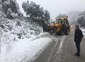 Varios equipos intervienen despejando vías cortadas y esparciendo sal para evitar la formación de placas de hielo