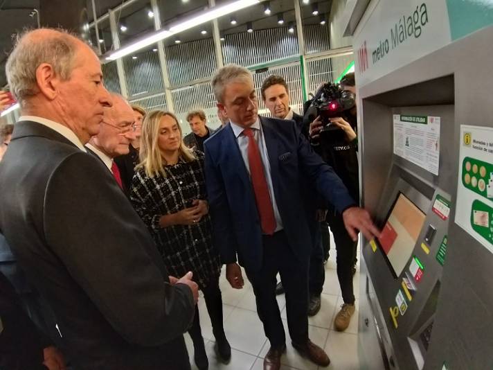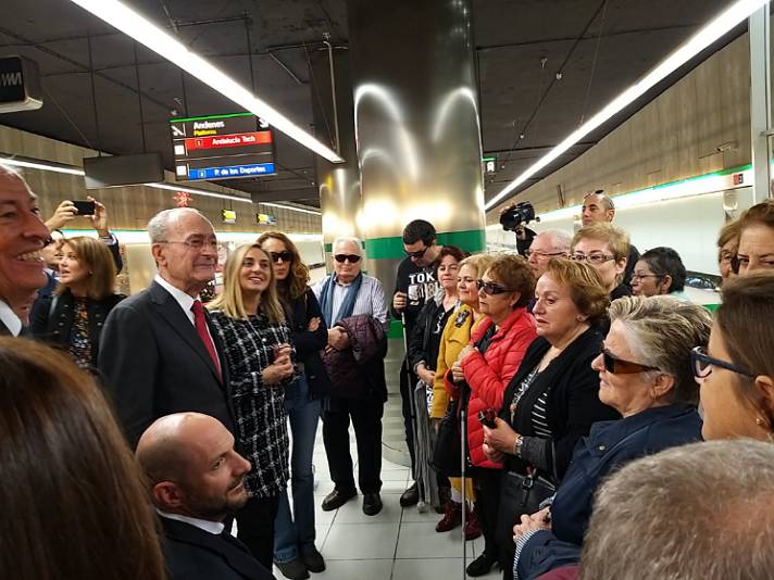 La consejera de Fomento, Infraestructuras y Ordenación del Territorio, Marifrán Carazo, ha acompañado, junto al alcalde de Málaga, Francisco de la Torre, a esta representación de la ONCE y ha aprovechado para informar de los últimos hitos del Metro de Málaga: la finalización de las excavaciones del segundo nivel del túnel entre Guadalmedina y Atarazanas y el establecimiento de un nuevo récord de viajeros en un día, registrado el pasado viernes coincidiendo con la celebración del Black Friday. Marifrán Carazo ha recibido en la estación de metro de El Perchel a una representación de la ONCE encabezada por su delegado territorial en Andalucía, Cristóbal Martínez. La jornada ha seguido en metro hasta la estación de Barbarela, donde se han comprobado las medidas implantadas en materia de accesibilidad tanto en las estaciones como en los trenes. El Metro de Málaga se convirtió en 2018 en el primer suburbano de España en conseguir la certificación AENOR en la gestión de la accesibilidad universal. No se trata solamente de la eliminación de las barreras arquitectónicas, sino de un nuevo concepto de accesibilidad en el que la organización del metro se adapta para dar servicio a todos los usuarios, con independencia de las características o diversidades funcionales que puedan tener. La concesionaria cuenta con un departamento de Accesibilidad, Medio Ambiente e I+D+i, que ha dotado de personal específico y de presupuesto propio. Entre las medidas aplicadas, Metro de Málaga utiliza bandas con contraste de color en diferentes elementos de las estaciones, de manera que se da mayor visibilidad para ayudar al tránsito de usuarios hacia los trenes o hacia las salidas de las estaciones. También se han instalado algunos elementos específicos como apoyos isquiáticos, puertas de apertura automática en la oficina de atención al cliente, situada en la estación El Perchel o la instalación de bucles de inducción magnética.