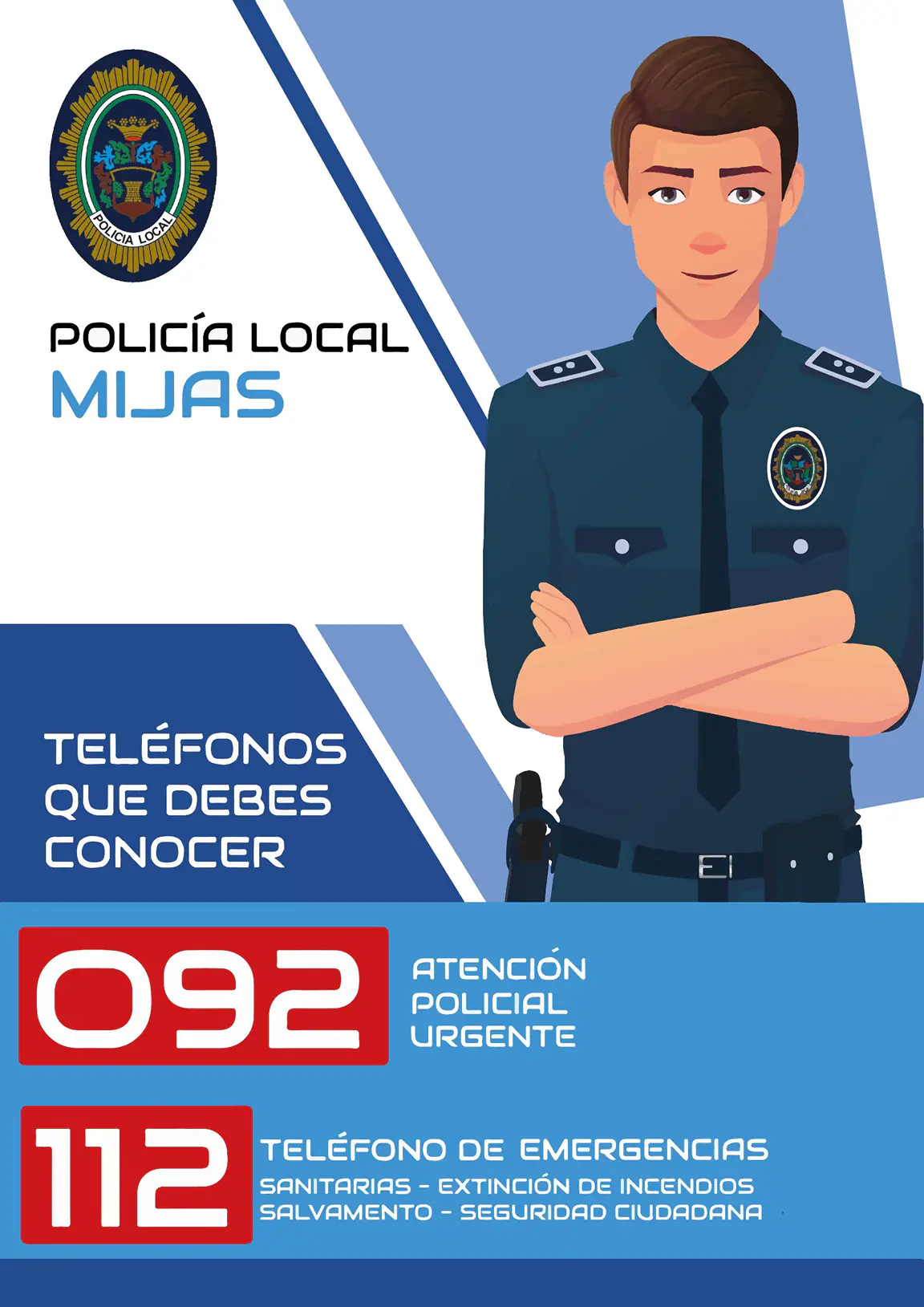 números de emergencias de Mijas. Tanto el 092, como con el 112, el número de emergencias general que proporciona asistencia en siete idiomas y conecta con diversos