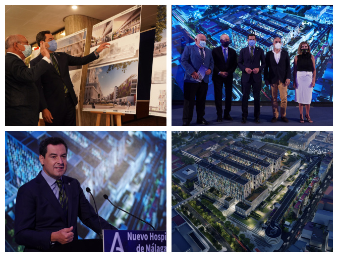 Moreno ha asistido al acto de presentación del anteproyecto del Nuevo Hospital de Málaga donde ha explicado que este hospital, que supondrá una inversión de 375 millones de euros, contará con quince plantas, con un diseño vanguardista y con una dotación integrada por 810 habitaciones, 42 quirófanos, 198 consultas, 66 boxes de UCI, dos mil plazas de aparcamiento y toda clase de medios y tecnología que harán de él un centro de referencia en especialidades de alta complejidad.