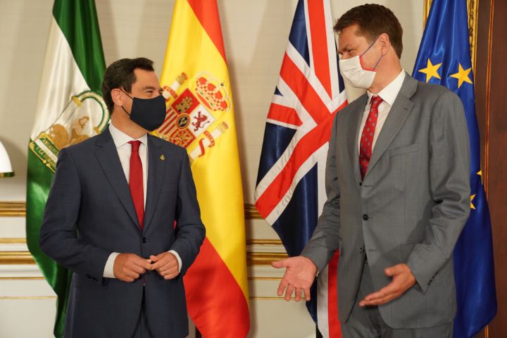 Durante una reunión en San Telmo, el presidente también ha querido acercar posturas sobre las nuevas relaciones comerciales entre Andalucía y Reino Unido tras su salida de la Unión Europea.