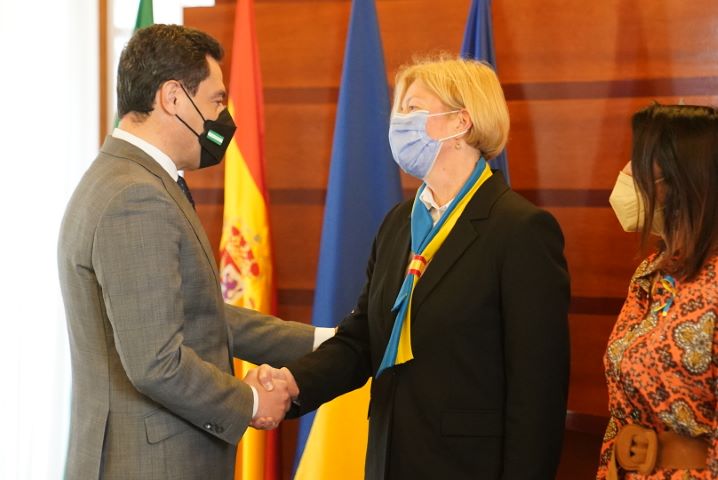Moreno les ha trasladado el apoyo y la solidaridad de los andaluces, que comparten plenamente la preocupación, el sufrimiento y la esperanza del pueblo ucraniano ante la agresión rusa. Al hilo de esto último, ha agradecido las miles de muestras de solidaridad de la comunidad andaluza en forma de ayudas directas, alimentos, medicinas, etc. También ha subrayado los recursos materiales y humanos ofrecidos al Consulado de Ucrania en Málaga para afrontar de la mejor manera el lógico aluvión de gestiones administrativas que se están produciendo.