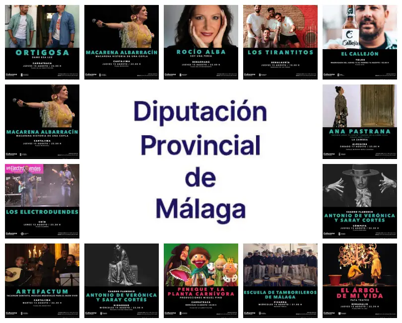 La Diputación de Málaga organiza una programación cultural semanal con la provincia como protagonista. Del 12 al 17 de agosto habrá actuaciones musicales, baile y teatro en los municipios de Coín, Cartajima, Riogordo, Pizarra, Carratraca, Cómpeta, Benalauría, Benadalid, Benarrabá, Tolox, Genalguacil, Montejaque y Alozaina.