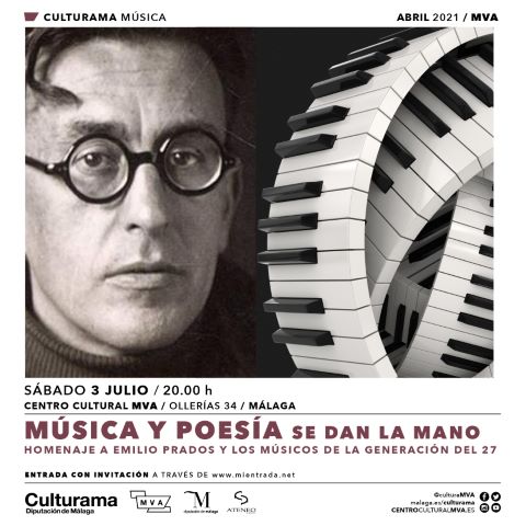 El 3 de julio, a las 20.00 horas, tendrá lugar en el Centro Cultural MVA un concierto en el que la pianista Paula Coronas interpretará obras musicales relacionadas con la música de la Generación del 27. Además, Francisco Chica, vocal de Nuevas Líneas del Ateneo de Málaga, realizará una glosa de la figura del poeta malagueño Emilio Prados, e Inés María Guzmán, vocal de Poesía, realizará una lectura de poemas del autor.