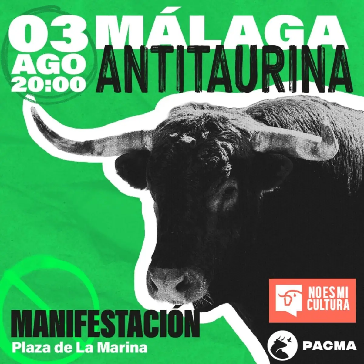Málaga, 2 de agosto de 2024 – El Partido Animalista PACMA celebrará mañana sábado su manifestación anual «Málaga Antitaurina». El acto dará comienzo a las 20:00 horas saliendo desde la Plaza de La Marina.