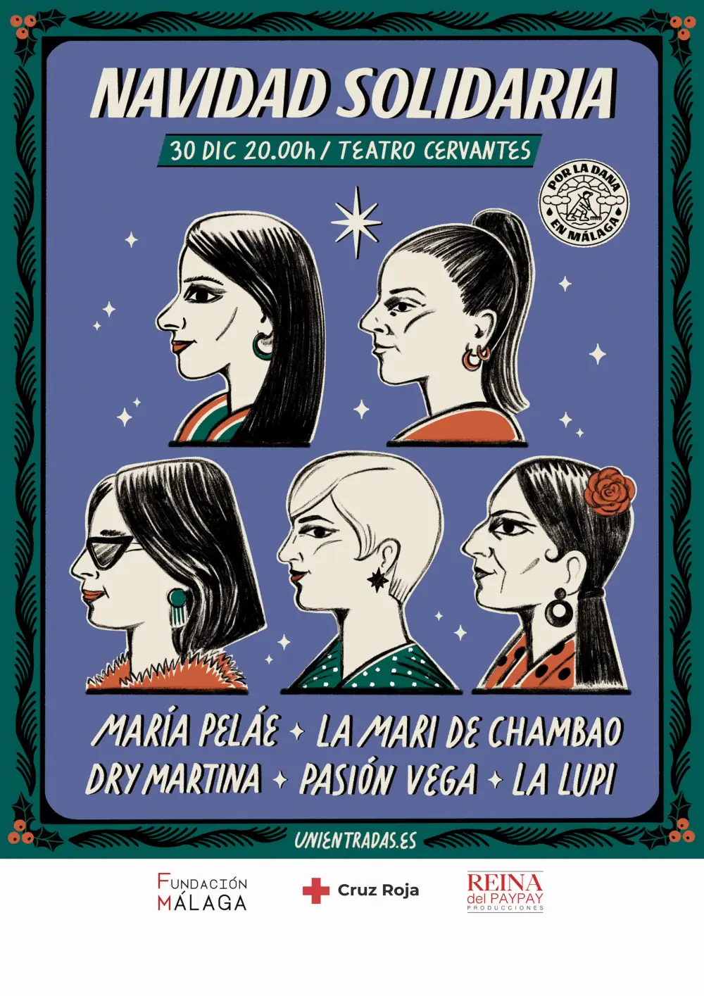 Málaga, 5 de diciembre de 2024. La artista Pasión Vega, Fundación Málaga y Cruz Roja Málaga presentan un concierto solidario que se celebrará el próximo lunes 30 de diciembre en el Teatro Cervantes a las 20:00 horas con las actuaciones de Pasión Vega, María Peláe, La Mari de Chambao, Laura Insausti de Dry Martina y la bailaora La Lupi y que tiene como objetivo principal el apoyo a las personas y familias afectadas por la DANA en la provincia de Málaga.