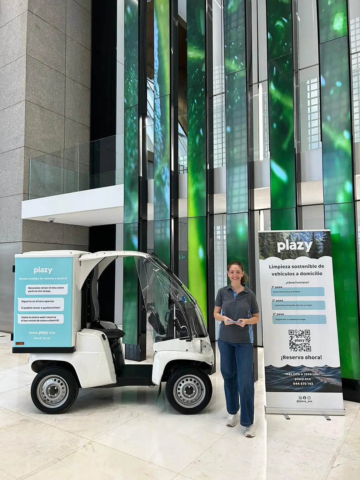 Creada en 2020, Plazy es una startup líder en servicios de lavado sostenible a domicilio para vehículos, barcos y hogares. Su plataforma permite a los clientes reservar y pagar los servicios a través de Internet. Un algoritmo asigna el servicio a un limpiador de la empresa, o plazier, que se desplaza hasta el lugar acordado con el cliente en un vehículo ecológico con todo lo necesario para realizar la limpieza. Su sistema de limpieza ecológica, de desarrollo propio, permite lavar un vehículo con el agua que cabe en una lata de refresco. Después, el cliente puede valorar la calidad del servicio realizado, suscribirse al servicio de lavado periódico y recibir avisos para las próximas fechas de limpieza previstas. Además, con el nuevo servicio de recomendación de lavados, también puede saber qué tipo de limpieza necesita su vehículo en cada momento. Más información en https://plazy.eco/
