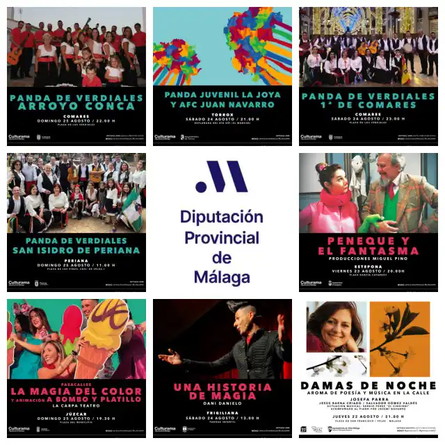 Poesía, teatro y música protagonizarán la agenda cultural de la Diputación de Málaga del 22 al 25 de agosto con actividades en los municipios de Vélez-Málaga, Estepona, Frigiliana, Comares, Torrox, Júzcar y Periana