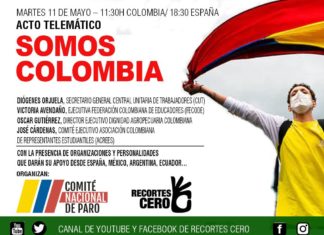 (Recortes Cero) En el acto realizado ayer por Recortes Cero y el Comité Nacional del Paro de Colombia en apoyo al pueblo colombiano, un...