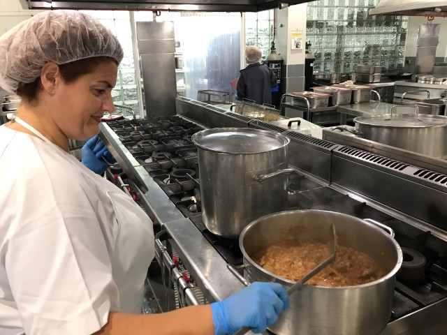 Tras la gestión oportuna con la Unidad de Endocrinología del hospital, se tomó la decisión de ofrecer cada día a una veintena de pacientes con dieta basal – sin restricción de nutrientes -la posibilidad de degustar el menú completo. Este consta de leche, café, pan, aceite y galletas para el desayuno, lentejas con verduras, estofado de ternera y manzana para el medio día y para la cena, tortilla de patatas, crema de verduras y yogurt.