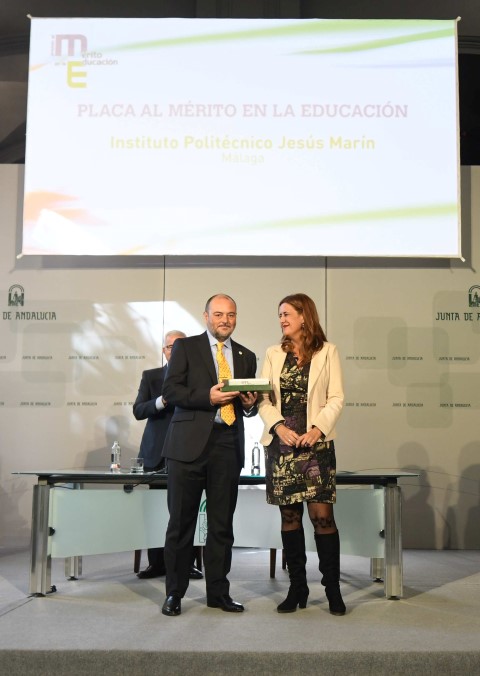 En esta categoría han sido galardonado con una placa el Instituto Politécnico ‘Jesús Marín’ de Málaga por ser un centro de referencia que conjuga la tradición e innovación educativa. Desde su creación, hace 90 años, ha formado a más de 100.000 alumnos y alumnas