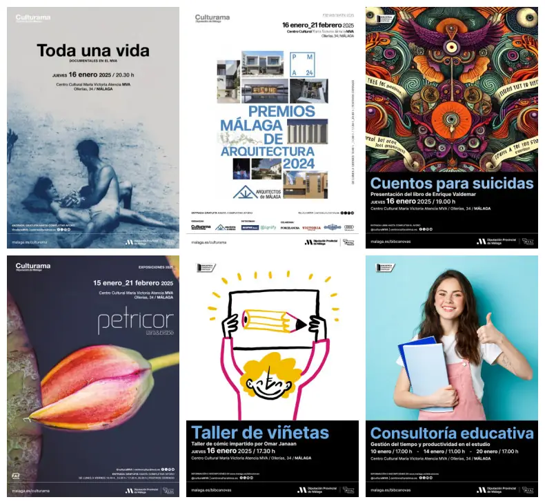 La Diputación de Málaga continúa su programación cultural para 2025 y ofrecerá para la próxima semana una serie de actividades en la Biblioteca Cánovas del Castillo y en el Centro Cultural MVA (c/ Ollerías, 34).