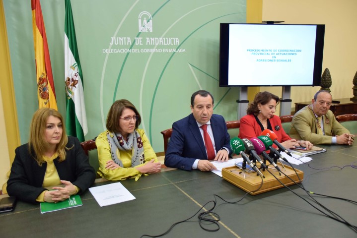 Los hospitales públicos de Málaga han iniciado la puesta en marcha de un protocolo de atención sanitaria a víctimas de agresión sexual que incluye la detección de sustancias por ‘sumisión química’. Así lo ha anunciado hoy el delegado del Gobierno, José Luis Ruiz Espejo, que junto a la delegada de Igualdad, Salud y Políticas Sociales, Ana Isabel González de la Torre, la directora general de Violencia de Género, María de los Ángeles Sepúlveda, la médico adjunta del Servicio de Urgencias del Hospital Costa del Sol, Carmen Agüera Urbano, y el director del Instituto Médico Legal de Málaga, José María Caba, na presentado el primer protocolo provincial de atención a víctimas de agresión sexual.