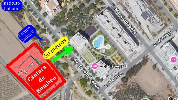 El proyecto contempla instalar una estación de bombeo en una parcela colindante con el paseo peatonal y un parque infantil, a escasa distancia de edificios de viviendas y de un Instituto de Educación Secundaria. Se trata de una parcela no urbanizable y de especial protección por ser zona inundable. De hecho, este mismo invierno ha vuelto a anegarse tras desbordarse el río Vélez. Esta ubicación ha generado preocupación entre la población, no solo por este riesgo, sino también por los efectos del bombeo: ruido, vibraciones, emisiones térmicas y alto impacto visual, especialmente por su cercanía a zonas residenciales.