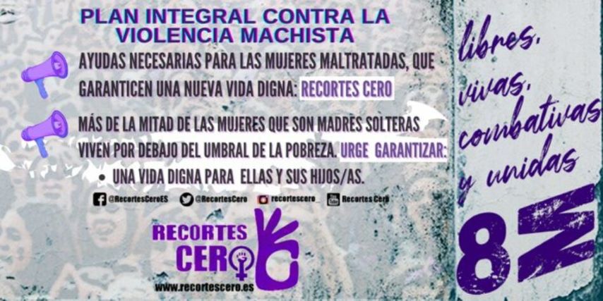 El manifiesto promovido por Recortes Cero, sitúa, precisamente dos centros: por una parte, denuncia esta situación tras un año de pandemia, proponiendo una alternativa “integral” de redistribución de la riqueza “para salir más fuertes de esta crisis” y por la otra exige “violencia de género, CERO”.