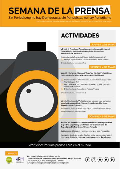 Alfonso Armada, presidente de Reporteros Sin Fronteras, ofrecerá una conferencia en el Aula Magna de la Facultad de Ciencias de la Comunicación de Málaga el próximo 4 de mayo sobre “Periodismo: un caso de vida o muerte para la democracia”.La charla, que se celebra con motivo del 25 aniversario de los estudios de Periodismo, se enmarca dentro de los actos de la Semana de la Prensa que organiza la APM, del 2 al 6 de mayo, con motivo del Día Mundial de la Libertad de Prensa.