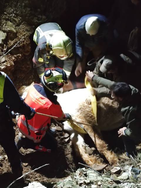 Ante una primera evaluación del veterinario, la yegua se encontraba estable pero a menos de un metro de un barranco de gran profundidad, lo que hacía muy complicado su rescate. «En muchos momentos temimos por la vida de nuestros voluntarios, por lo que mi hermana y yo nunca les estaremos lo suficientemente agradecidas», explica Concordia Márquez, presidenta de la Asociación CYD Santa María.