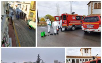 Bomberos, agricultores y ganaderos, se vuelcan en la desinfección de las calles de los...