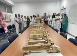 El Hospital Clínico de Málaga recibe medio centenar de juguetes de madera realizados de...