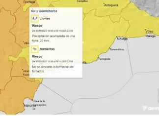 La Aemet activa el aviso naranja por lluvias en la provincia de Málaga a partir de las 15:00 horas