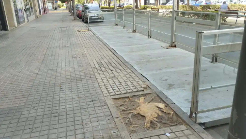 No es algo nuevo, pasa en todos lados, por eso no digo el nombre de mi pueblo, aunque sea fácil de buscar. Asistimos al arboricidio sistemático y a la sustitución de la vegetación natural por macetitas, toldos, parques de adorno y césped artificial. A veces lo puedo entender, ya que es necesario deshacerse de algún ejemplar por la seguridad del vecindario, porque las raíces destrozan tuberías o hay que hacer una calle nueva, pero ¿para qué un comerciante no tenga que limpiar las mesas? Inaudito, increíble, de traca.