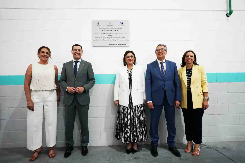 El presidente de la Diputación de Málaga, Francisco Salado, ha participado esta tarde en la inauguración del pabellón, en un acto que ha contado también con la asistencia del presidente de la Junta de Andalucía, Juanma Moreno; la alcaldesa de Torremolinos, Margarita del Cid; y familiares de Javier Imbroda, entre ellos su viuda, Salvadora Acosta, y su hermano y presidente de la Ciudad Autónoma de Melilla, Juan José Imbroda.