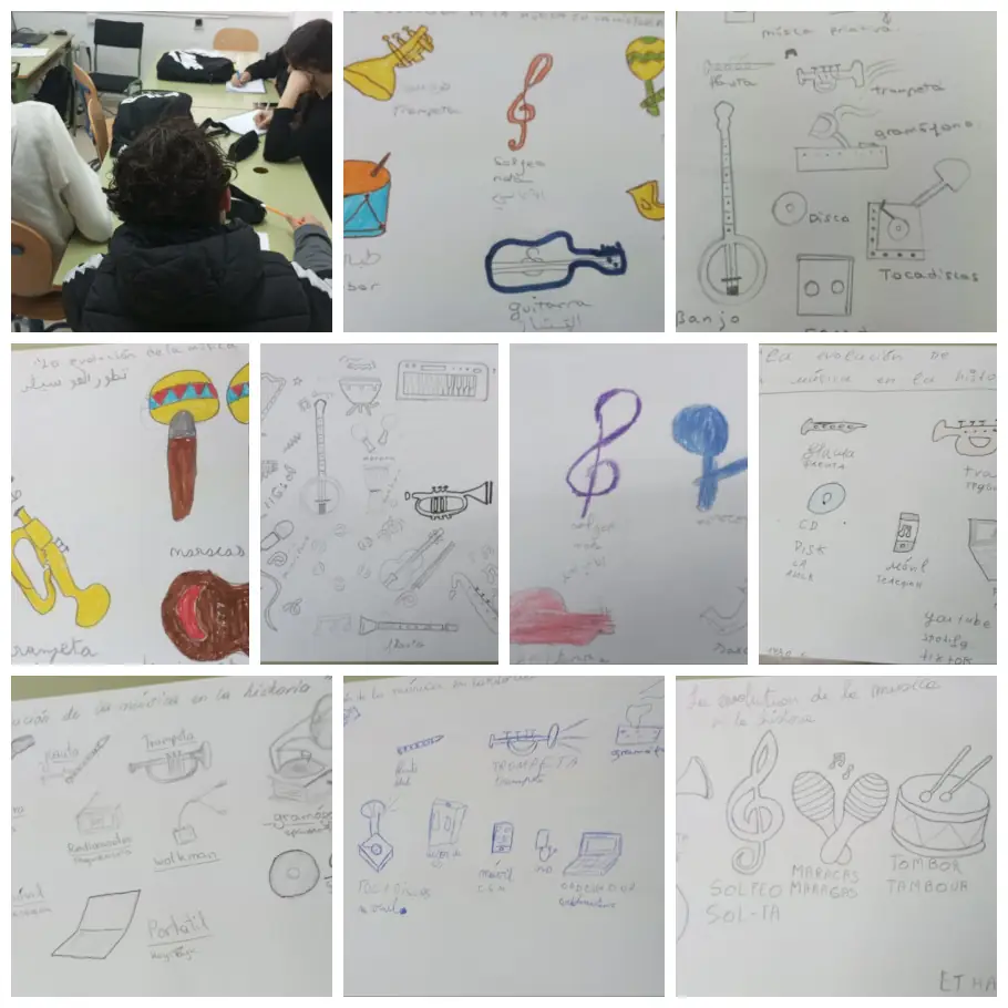 (Jesús Miguel Relinque Mota) Trabajos del alumnado extranjero del aula de Atal del IES Los Manantiales sobre la evolución de la música en la historia.