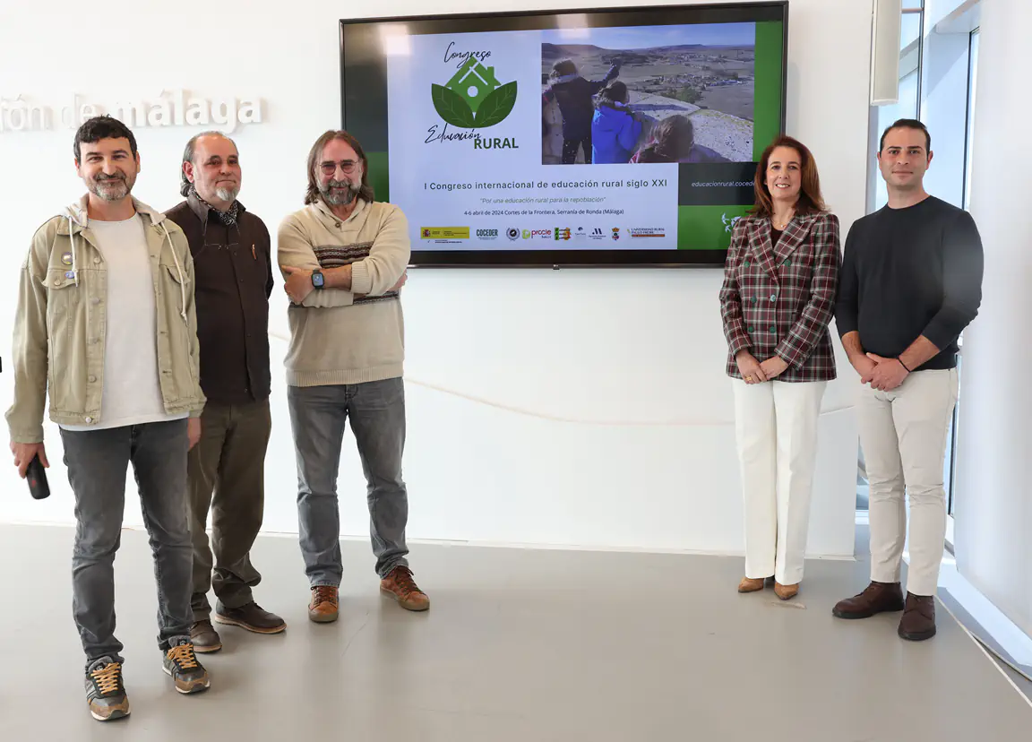 La vicepresidenta de Ciudadanía y Equilibrio Territorial, Antonia Ledesma, ha presentado hoy este congreso, que se desarrollará bajo el título ‘Por una educación rural para la repoblación’, junto al alcalde de Cortes de la Frontera, José Antonio Zurera; José Ignacio Rivas, del grupo de investigación Profesorado, Comunicación e Investigación Educativa (ProCie) de la Universidad de Málaga; y Antonio Viñas, de la Confederación de Centros de Desarrollo Rural y de la Universidad Rural Paulo Freire Serranía de Ronda.
