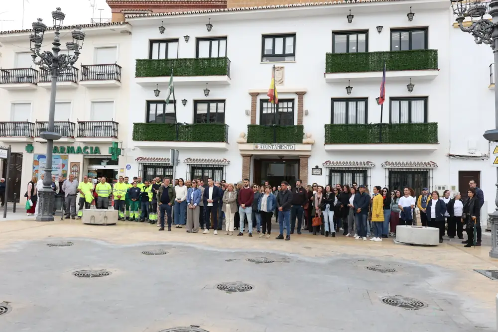 Torrox, 4 de abril de 2025.- Un centenar de personas, entre funcionarios, trabajadores municipales y vecinos, se han concentrado a mediodía de este viernes 4 de abril en la Plaza de la Constitución de Torrox, a las puertas del Ayuntamiento, en apoyo al funcionario agredido el pasado martes. La concentración fue convocada por los tres sindicatos con representación en el Consistorio torroxeño, UGT, CSIF y CCOO, “en apoyo a nuestro compañero y como respuesta colectiva de repulsa y condena a todo acto de violencia”. El alcalde de Torrox, Óscar Medina, ha secundado la concentración a la que ha asistido junto a ediles de los grupos municipales de PP, PSOE e IU. Medina ha manifestado que “mostramos nuestra solidaridad y el rechazo absoluto a cualquier tipo de violencia, en este caso realizada contra un funcionario ejemplar en el desempeño de sus funciones”.