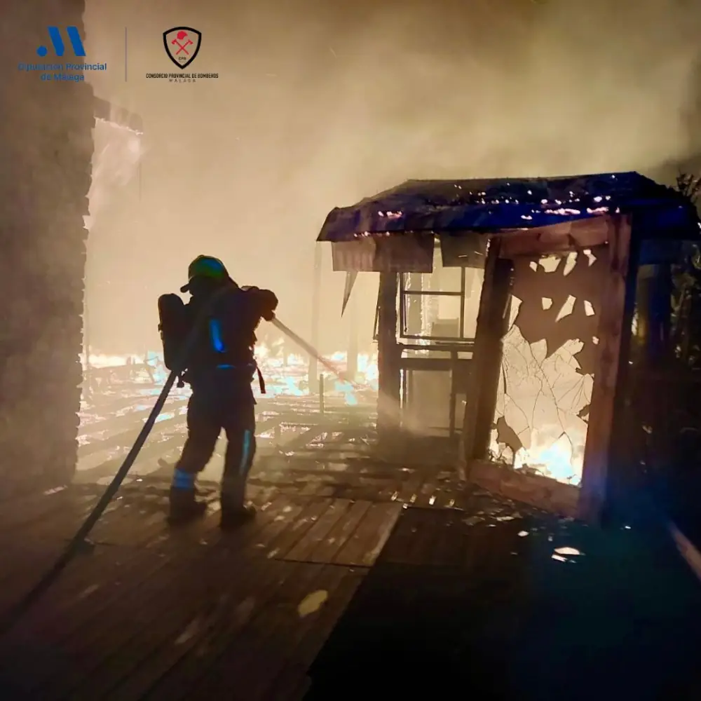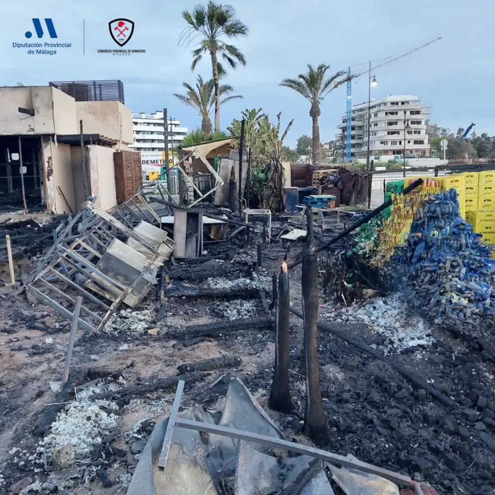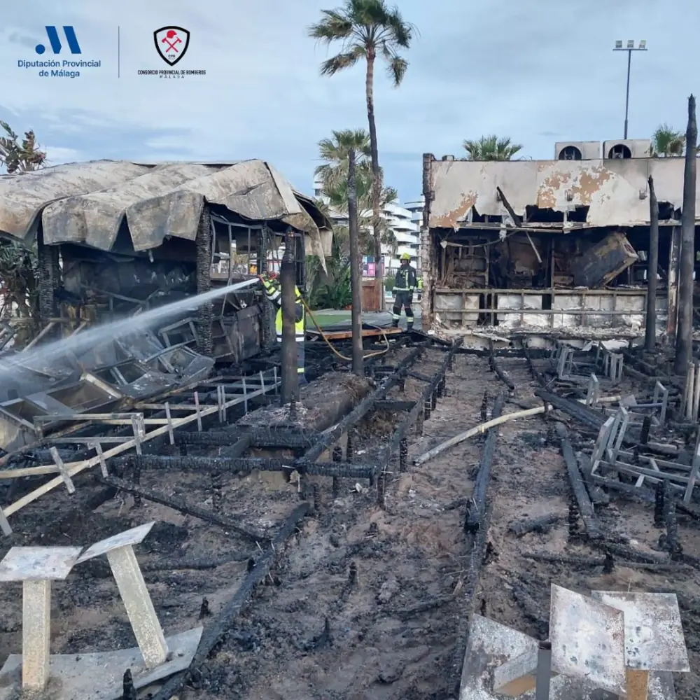 Las dotaciones del Consorcio Provincial de Bomberos (CPB) con base en Torremolinos y Alhaurín de la Torre sofocaron durante la pasada madrugada un virulento incendio que arrasó por completo el chiringuito El Silencio, situado en el paseo marítimo de Los Álamos. La intervención se produjo a requerimiento de la Policía Nacional, que recibió los primeros avisos en torno a las 02:30 horas.