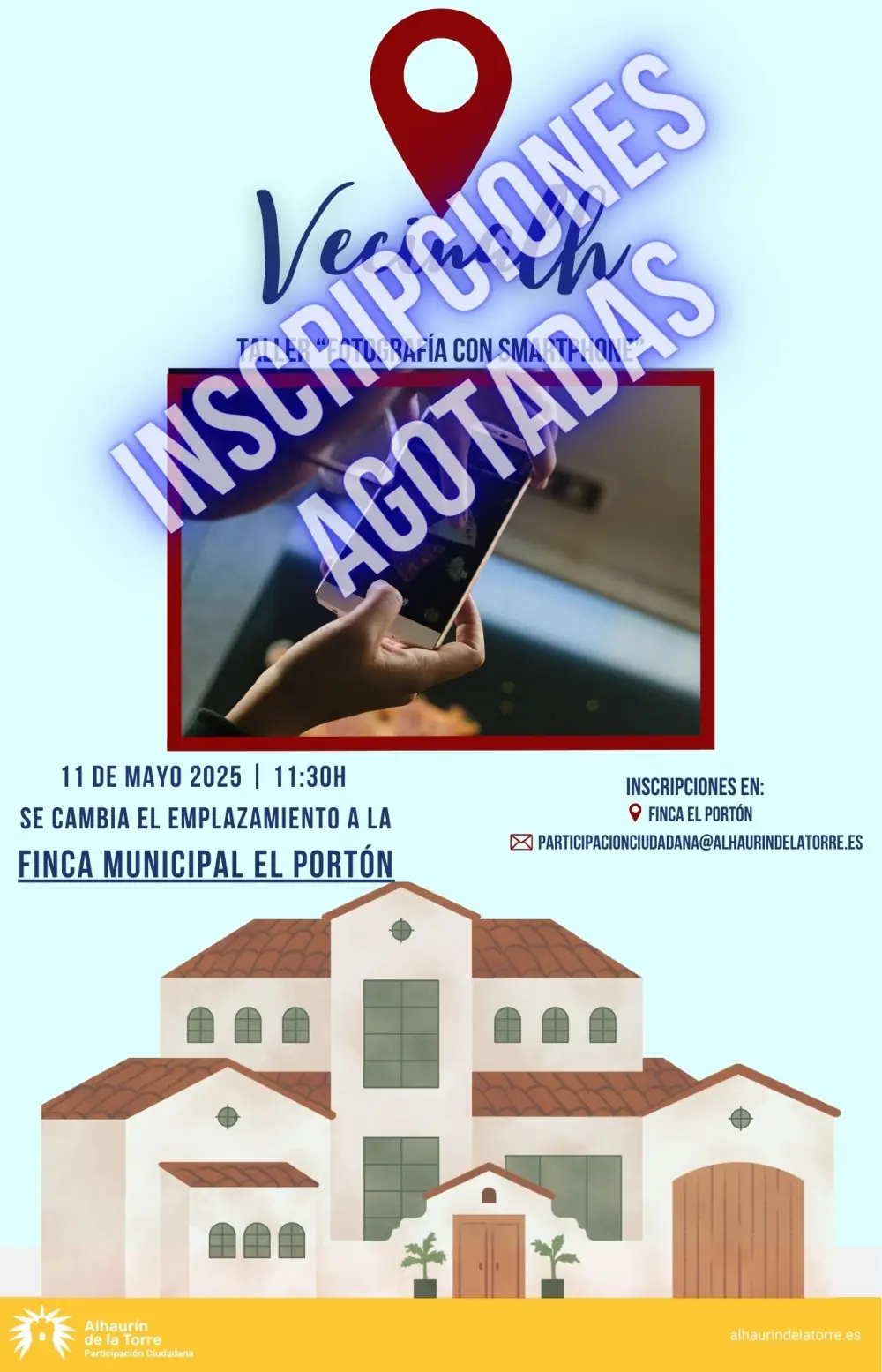 Vecinalh, el ciclo organizado por el Área de Participación Ciudadana que dirige Andrés García, cerrará este próximo domingo, 11 de mayo, su segunda edición con un original taller de fotografía con ‘smartphones’ en la Finca Municipal El Portón. La jornada formativa, para la cual se han agotado todas las inscripciones, comenzará a las once y media de la mañana y los participantes tendrán que ir equipados con sus propios dispositivos con cámara.