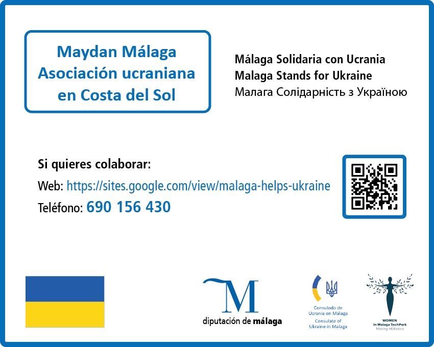 Maydan Málaga, Asociación Ucraniana en Costa del Sol ha puesto en marcha junto al Consulado de Ucrania en Málaga una página web https://sites.google.com/view/malaga-helps-ukraine/inicio, y un teléfono (690156430) para atender las ayudas de la ciudadanía malagueña al pueblo ucraniano con el respaldo de la Diputación de Málaga, la Junta de Andalucía, el Ayuntamiento de Málaga.