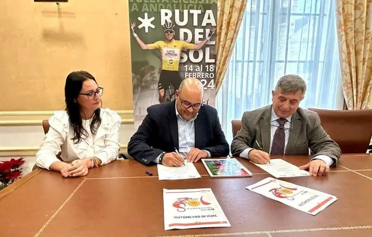La Vuelta Ciclista a Andalucía en su 70ª edición continúa desvelando detalles de su recorrido y este martes se ha dado a conocer que la capital axárquica será salida de la segunda etapa de la ronda andaluza el próximo día 15 de febrero. El acto de firma del acuerdo contó con la presencia del Alcalde de la localidad Jesús Lupiañez, la Concejala de Deportes, Rocío Ruiz y del Director General de Deporinter, la empresa organizadora, Joaquín Cuevas.