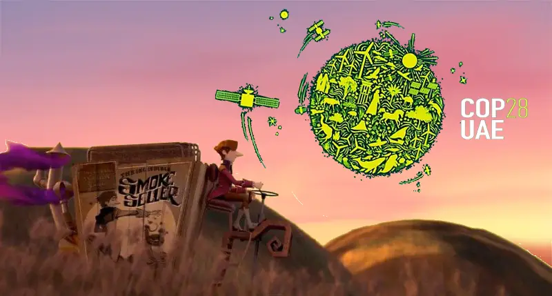 (Moisés S. Palmero Aranda, Educador ambiental) Con el inicio de la COP28 de Dubái, he recordado el corto que ganó numerosos premios, entre ellos el Goya al mejor corto de animación de 2013, El vendedor de humo. Un comerciante ambulante llega a un humilde pueblo, ofreciendo a sus habitantes un elixir para hacer realidad sus sueños a cambio de unas monedas. No le hacen caso, pero como buen charlatán, con un bonito espectáculo de marketing, consigue su objetivo de llenar el cofre. Tanto es su prestigio, que el mismísimo alcalde sucumbe a su llamada con el cetro coronado con un gran diamante.