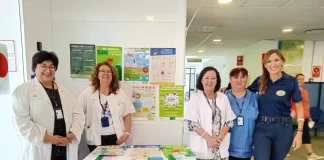El centro ha instalado una mesa informativa para informar sobre las patologías asociadas al VPH y cómo prevenirlas